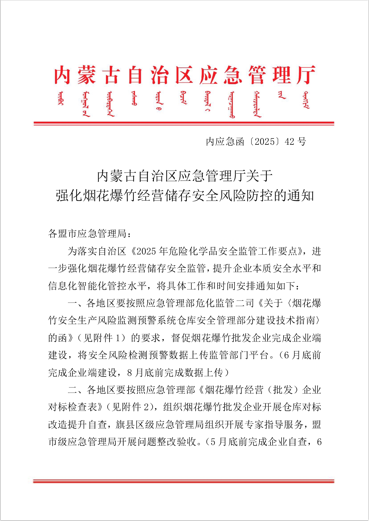 根據(jù)《內(nèi)蒙古自治區(qū)應(yīng)急管理廳關(guān)于強化煙花爆竹經(jīng)營儲存安全風(fēng)險防控的通知》,企業(yè)需重點落實以下任務(wù):
