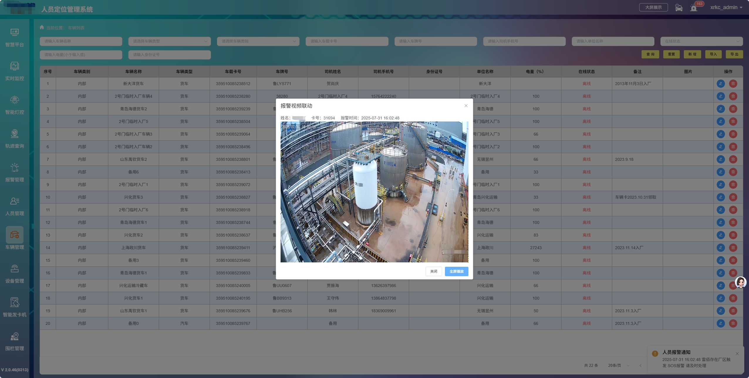 可與主流的視頻監(jiān)控系統(tǒng)對(duì)接聯(lián)動(dòng),在實(shí)時(shí)跟蹤和歷史軌跡查詢時(shí),能聯(lián)動(dòng)區(qū)域內(nèi)的攝像頭獲取視頻畫面,便于管理者迅速查看現(xiàn)場(chǎng)情況。