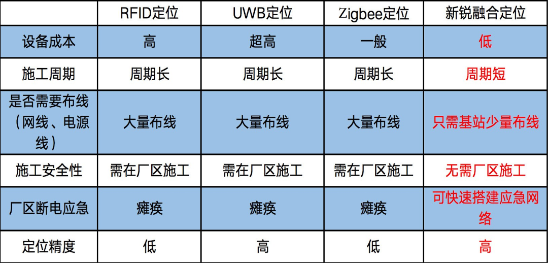 除了以上提及的四種常見技術,目前市場上還有幾十甚至上百種定位技術,比如說,新銳融合定位技術。新銳融合定位技術是由新銳科創(chuàng)依托行業(yè)優(yōu)秀的無線通訊專家和數(shù)據(jù)安全開發(fā)團隊,融合物聯(lián)網(wǎng)、云計算、大數(shù)據(jù)、算法引擎等先進技術而來。新銳融合定位技術設備成本低,施工周期短,只需基站少量布線,不需要在廠房進行弱電施工;即便遇到如燃燒、爆炸類事故導致廠區(qū)斷電等突發(fā)事故,仍可快速搭建應急網(wǎng)絡,進行求救信息響應;更為重要的是,新銳融合定位技術定位精度非常高,用戶體驗非常好。